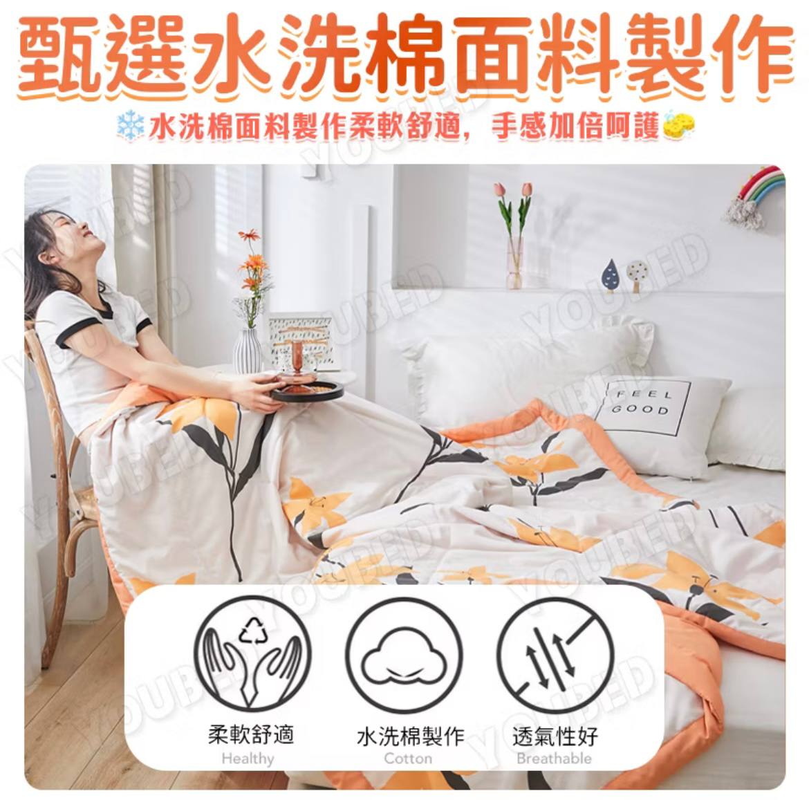 可機洗水洗 整張棉填充 活性印染 水洗棉面料