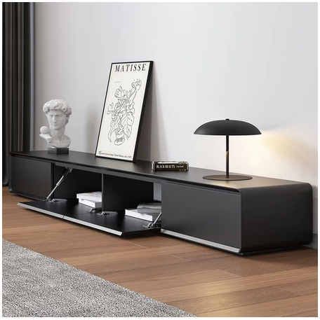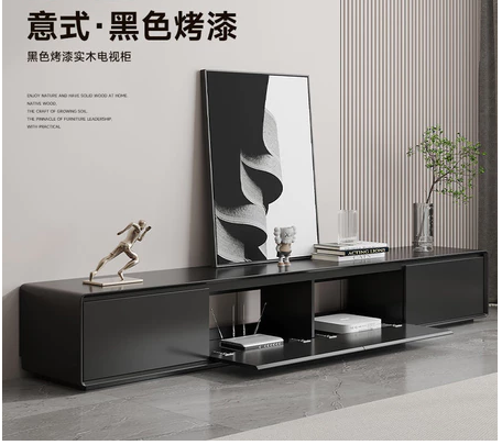 銀河黑色電視櫃背部鏤空簡約現代小戶型客廳實木落地電視機櫃極簡風