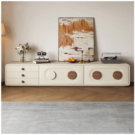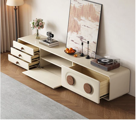 電視櫃落地客廳家用新款矮櫃中古奶油風地櫃靠牆收納儲物櫃一體